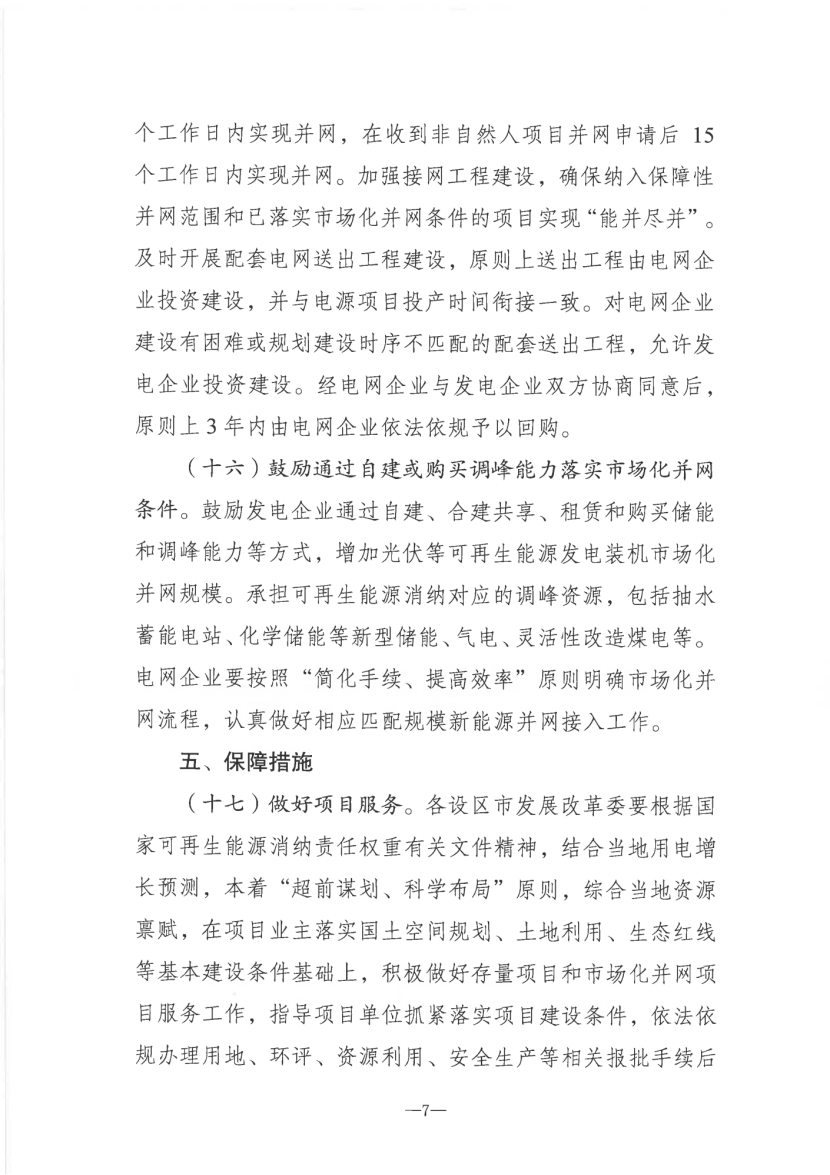 在消纳方面,全面提升电力系统灵活调节能力,提高配电网接纳分布式光伏发电能力,优化光伏发电项目接网流程,电网企业应在收到自然人项目并网申请后5个工作日内实现并网,在收到非自然人项目并网申请后15个工作日内实现并网。