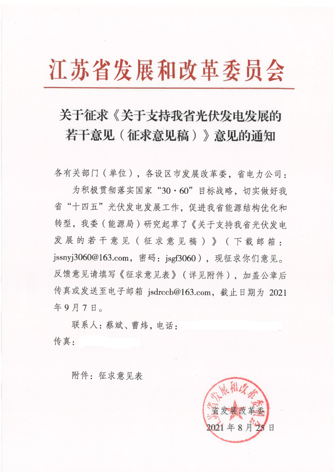 8月25日,江苏省发改委印发《关于支持我省光伏发电发展的若干意见(征求意见稿)》意见的通知,就集中式光伏电站、分布式光伏电站发展给出指导意见。