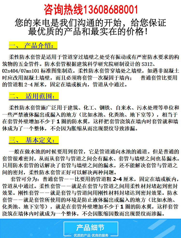 ◆防水套管系列:柔性防水套管,刚性防水套管,加长型柔性防水套管等.