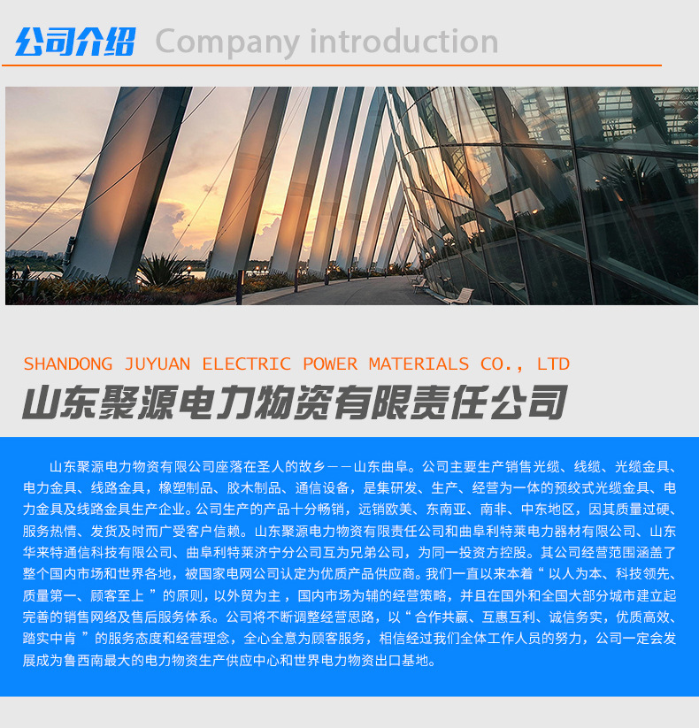 主营: 公司主要生产销售光缆、线缆、光缆金具、电力金具、线路金具,橡塑制品、胶木制品、通信设备,是集研发、生产、经营为一体的预绞式光缆金具、电力金具及线路金具生产企业。