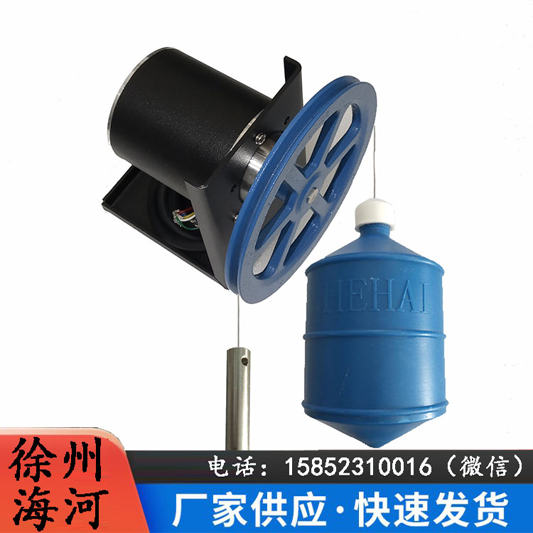 其工作原理就是:水位传感器测轮安装在编码器输入轴上,钢丝绳一端连接浮子、另一端连接重锤,钢丝绳绕在测轮上。当液位发生变化时浮子随液位的变化而升降,钢丝绳带动测轮转动,编码器输出相应的实时水位值。