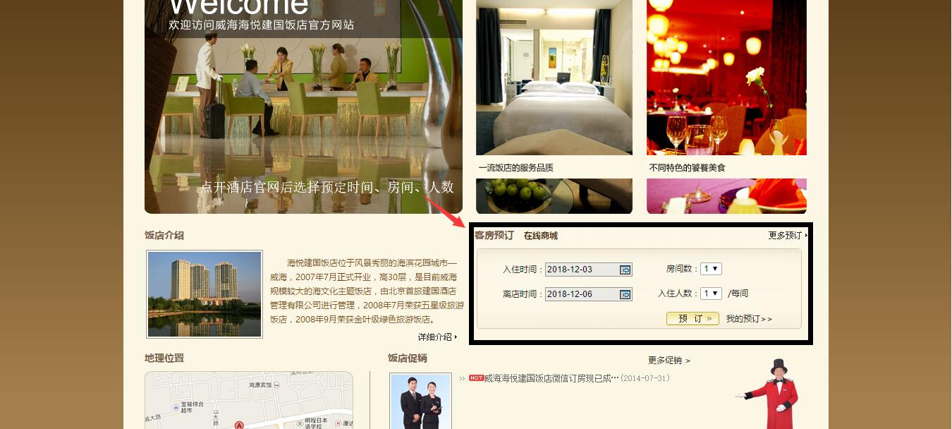 威海海悦建国饭店位于风景秀丽的海滨花园城市——威海。由山东大屋集团有限责任公司投资建设,是目前威海规模最大的五星级商务饭店。