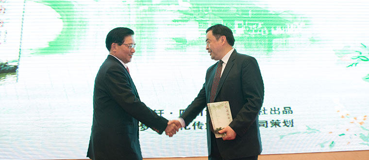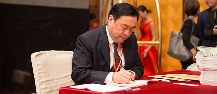 11月5日晚,“十一科技之夜”交流晚宴暨 2015 “光能杯”CREC颁奖典礼中,十一科技赵振元院长为新书《江南的雨》签名。