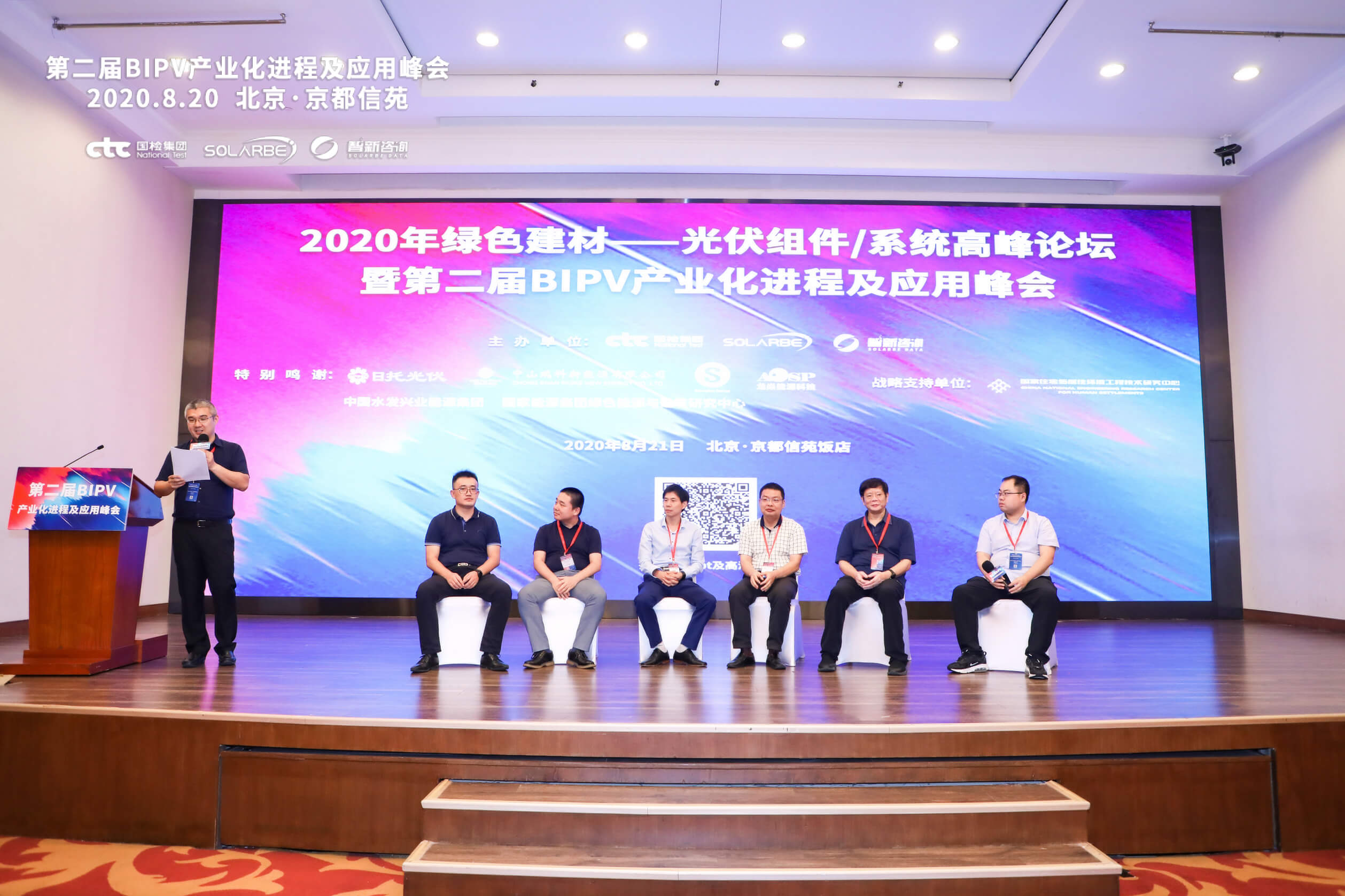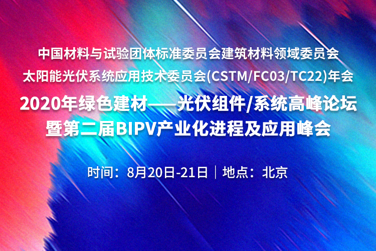 2020年绿色建材——光伏组件/系统高峰论坛暨第二届BIPV产业化进程及应用峰会由CTC国检集团、Solarbe索比光伏网联合主办,本次论坛得到了来自全国绿色建材评价管理办公室、中国建材集团、中国建筑材料科学研究总院、中国材料与试验团体标准委员会建材领域委员会(CSTM/FC03)、中国绿色供应链联盟光伏专委会(ECOPV)、中国绿色供应链联盟绿色建材专委会、国家新材料测试评价平台、绿色建筑材料国家重点实验室、建材行业建筑构件及材料环境条件与环境试验标委会的大力支持。 本次论坛聚焦光伏建材的“十四五”规划、绿色建材采信应用数据库入库政策解读、绿色建筑的选材、绿色建材光伏组件/系统认证、防火标准及认证以及光伏建材的设计、生产、推广等热点问题进行深入讨论。