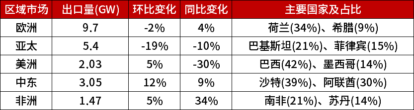 美洲市场出现分化格局,2025年6月中国出口至美洲的光伏组件环比小幅上升5%,但同比仍下降30%。巴西作为该地区最大市场,单月进口0.85GW中国组件,占美洲市场的42%,但相比2024年同期的1.98GW大幅下降57%。这一数据变化反映了美国关税政策对中国光伏企业的持续影响,以及巴西市场自身的波动性。相比之下,非洲市场表现亮眼,2025年上半年中国组件出口量达7.27GW,同比增长45%,南非、苏丹和埃及是主要进口国,其中苏丹6月进口量同比激增4023%,显示非洲光伏市场正在快速启动。