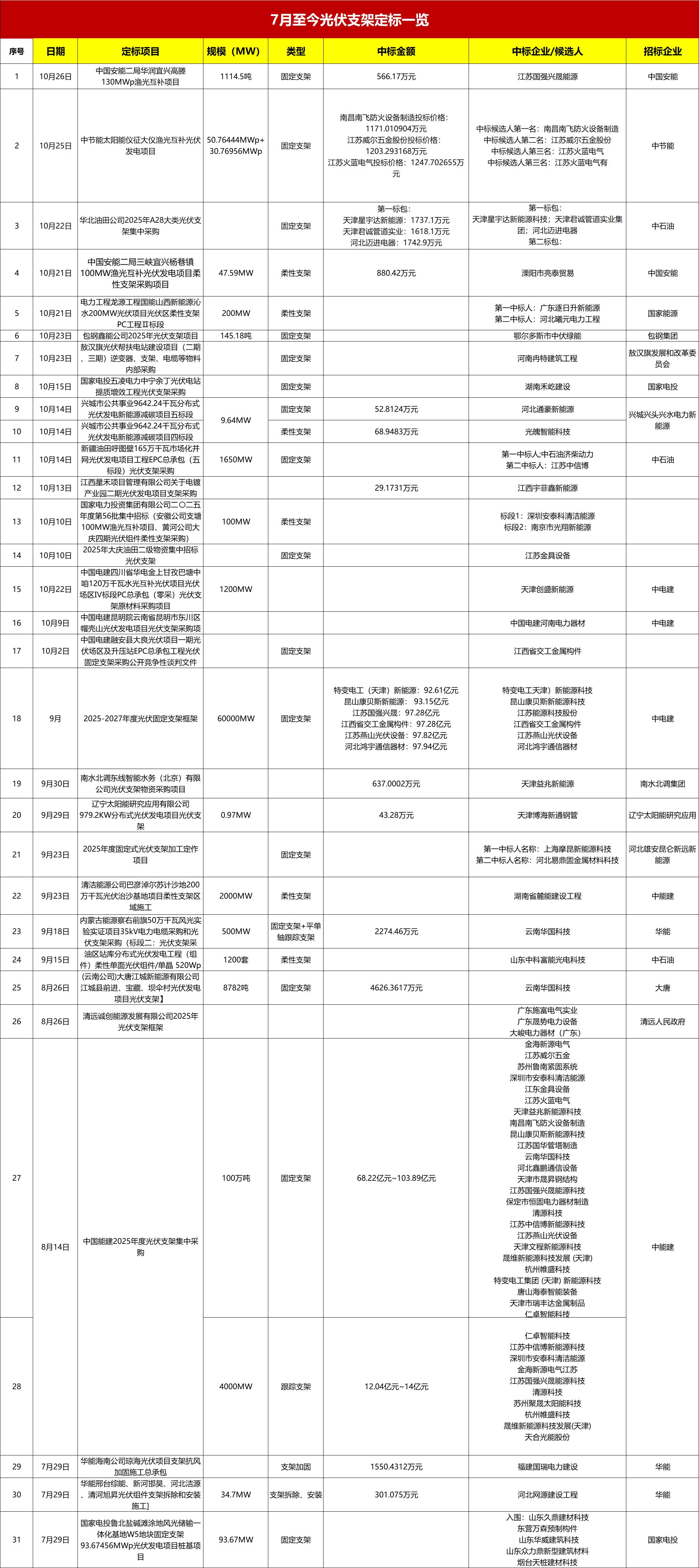 在中国电建发布的2025-2027年度光伏固定支架框架采购中,规模达60GW,六家入围企业的总报价集中在92亿至98亿元区间。