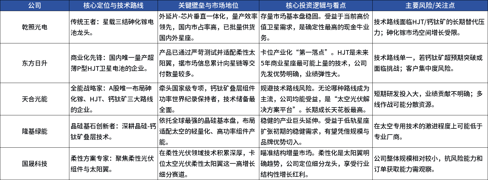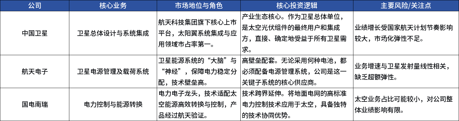 他们是太空光伏组件的最终买家和使用方,其技术路线选择直接影响中上游格局。