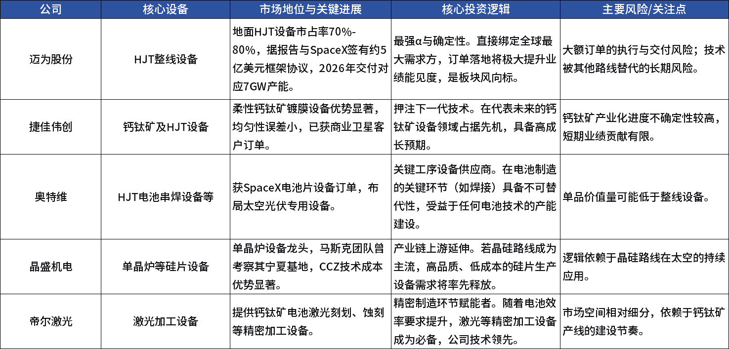 无论技术路线如何选择,产能扩张都意味着设备订单先行。太空光伏对电池效率、均匀性、可靠性的要求,倒逼设备向超高精度和工艺控制方向发展。